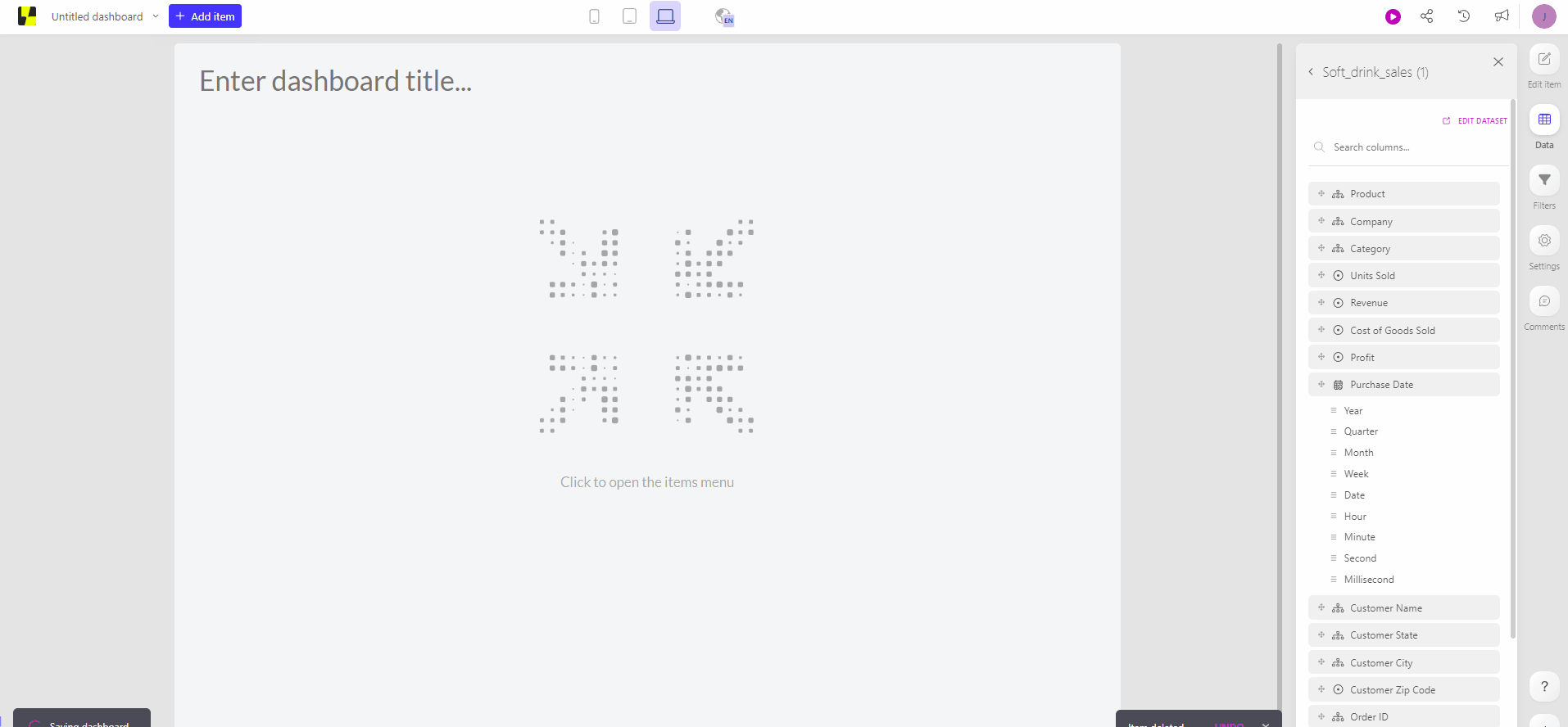 Dashboards contain the main KPIs an organization needs to track. These are important numbers for which it could be desired to see the evolution compared to the previous time period.